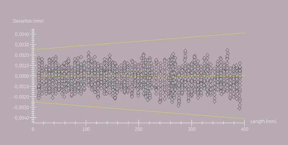 The demands in quality management are constantly increasing. That is why you must be able to rely on the constant measuring deviations of your machines. In ZOLLER measuring machines, high-precision calibration standards made of Borofloatglas® are used to determine the length measurement deviations in accordance with the DIN EN ISO 10360 standard. In accordance with this standard, at least three measuring sequences (25,326 relationships) are carried out. With this procedure, the accuracy of the ZOLLER measuring machines is documented in two dimensions and can be traced at any time.