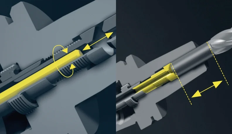Insert the tool, press the button, done. This is how easy it is to power-clamp tools with the universal high-precision »ace« (all-clamping-element) spindle from ZOLLER - always with the same precision, μm-accurate and safe. The universal attachment holder changing system enables an exchange in less than 10 seconds between clamping systems such as SK, HSK, PSC, VDI, KM or hydraulic expansion. No wonder that this power-operated high-precision spindle has been delighting users worldwide for decades.