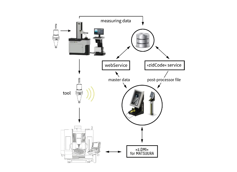 ZOLLER »z.DMI« Technology enables the direct transfer of tool data to the tool memory of the machine control and back to the z.One Database.