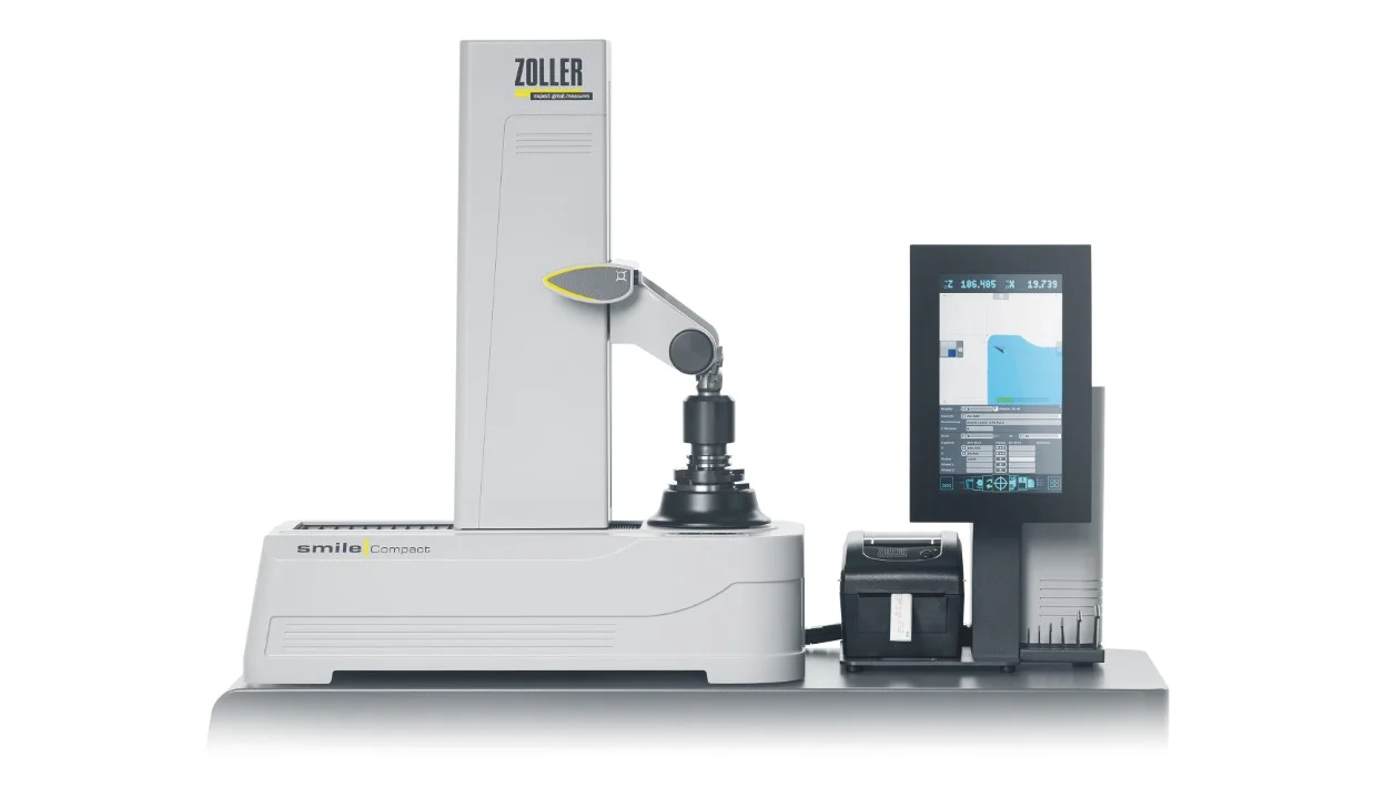 You receive a "smileCompact" presetting device with the basic device plus the "pilotStarter" measuring device software. This is characterized by its simple operation and practical functions: Measuring macros with tool images for quick and easy measuring, automatic cutting edge shape and measuring range detection, determination and measurement of the maximum contour and the "compass" navigation system
