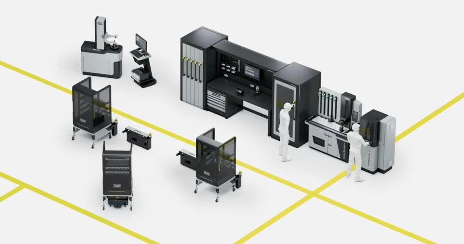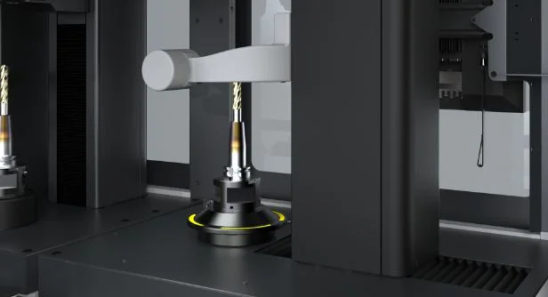Montagemodule – zur Bearbeitung der Werkzeuge. Mit den variablen Montagemodulen können Werkzeuge innerhalb der »roboBox« z. B. ein- und ausgeschrumpft, abgekühllt, gemessen, vertikal ein- und ausgespannt sowie ein- und ausgepresst werden.