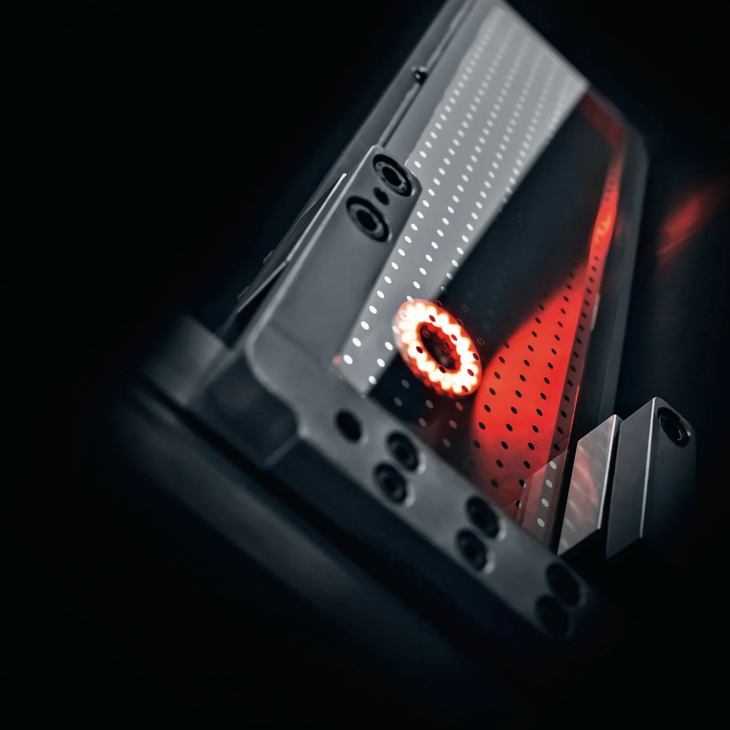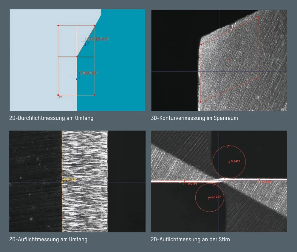 ermöglicht mit hochwertiger, verzeichnungsarmer Optik und telezentrischem Durchlicht das μm-genaue Vermessen von Schneidenkonturen sowie der Stufengeometrie im Schattenriss mit bis zu 5 Mpx. Die Kamera verfügt über eine hohe Bildwiederholrate für schnellen Fokus und Konturaufnahme aus der Werkzeugrotation. Das Multi-LED-Ringlicht sorgt für eine lichtstarke und kontrastreiche Ausleuchtung der Schneideninspektion im Auflicht.