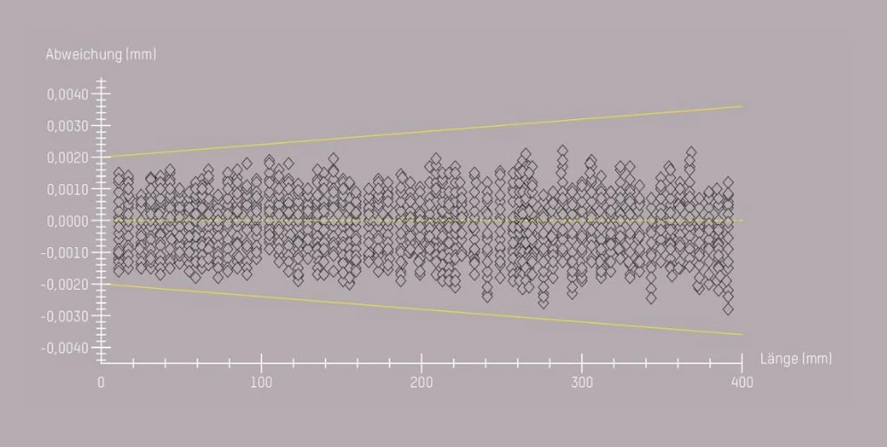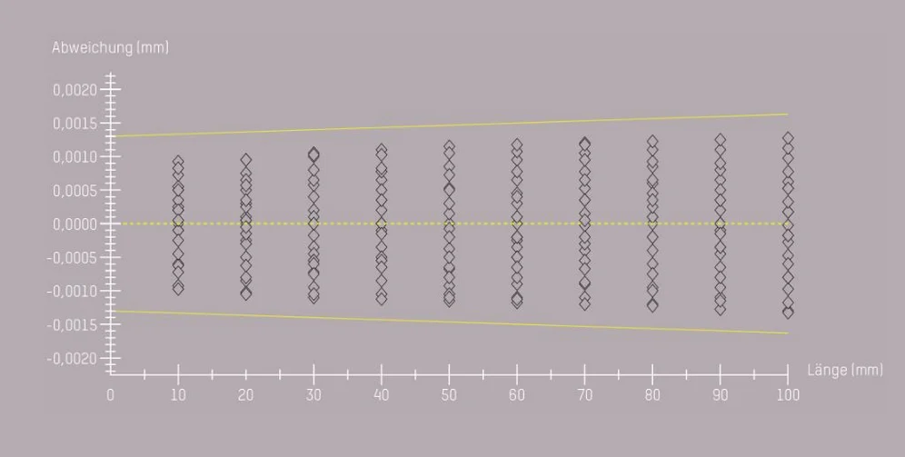 Die Ansprüche im Qualitätsmanagement steigen ständig. Deshalb müssen Sie sich auf die konstanten Messabweichungen Ihrer Maschinen verlassen können. In ZOLLER-Messmaschinen werden mit hochpräzisen Kalibriernormalen aus Borofloatglas® die Längenmessabweichungen in Anlehnung an die Norm DIN EN ISO 10360 ermittelt. Gemäß dieser Norm erfolgen mindestens drei Messabläufe (25.326 Beziehungen). Mit dieser Vorgehensweise wird zweidimensional die Genauigkeit der ZOLLER-Messmaschinen dokumentiert und ist jederzeit nachvollziehbar.