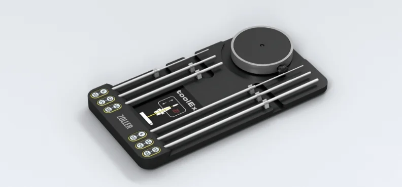 Zur Aufbewahrung der Reinigungsbürsten gibt es eine Ablage mit allen Bürstendurchmessern, welche über Magnete an beliebiger Position am Gerät angebracht werden kann. Auch die Bürsten zur Reinigung der Aufnahmebohrung von Schrumpffuttern sind bei ZOLLER erhältlich – für Schaftdurchmesser D3 mm bis D32 mm, wahlweise aus Messing oder Kunststoff.
