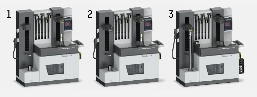Mit der Luftkühlung »zStream« von ZOLLER erhalten Sie maximale Flexibilität und Schutz beim Kühlen Ihrer Schrumpffutter, unabhängig von deren Kontur oder Durchmesser. Zudem werden Ihre Schrumpfwerkzeuge über die gesamte Länge gleichmäßig und sicher gekühlt – ohne die Gefahr, beschädigt zu werden. »zStream« eignet sich auch hervorragend zur Kühlung abgesetzter Werkzeuge. »powerShrink« erhalten Sie mit zwei bzw. drei separaten Kühlplätzen* für eine parallele, effektive Nutzung.