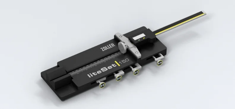 Mit »liteSet« stellen Sie die Auskraglänge des einzuschrumpfenden Werkzeugs ein. Die maximale Auskraglänge beträgt 150 mm. Das Set beinhaltet vier Klemmprismen für Schaftdurchmesser D3 mm bis D32 mm.
