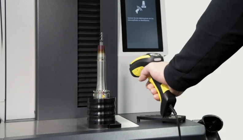 Die »pilot« Software Scan-Funktion in Kombination mit dem Hand-Scanner ermöglichen eine sichere Auswahl des passenden Schrumpfparameters per Scan der Halternummer auf der Schrumpfaufnahme. Unabhängig vom Hersteller werden alle Schrumpffutter mit DataMatrix-Code (z. B. ZOLLER »idLabel«, ZOLLER »idChip«) unterstützt.