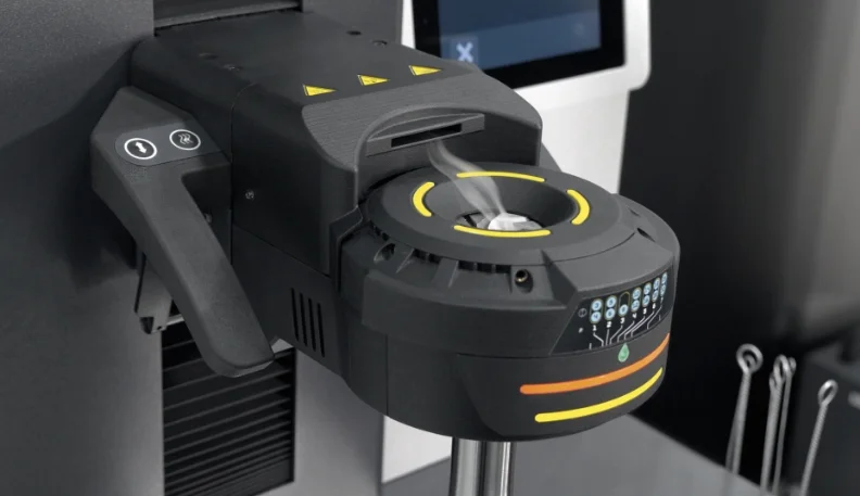 Die Rauchgasabsaugung entfernt Rauchgase zuverlässig aus dem Arbeitsbereich der Bedienerin und des Bedieners. Die etablierte und patentierte Rauchgasabsaugung oberhalb der Induktionsspule wurde um eine integrierte Absaugung im Inneren des Spulengehäuses erweitert. Die Rauchgase werden somit direkt dort abgesaugt, wo sie entstehen. Die Filtereinheit findet im Untertisch einen sicheren Platz.