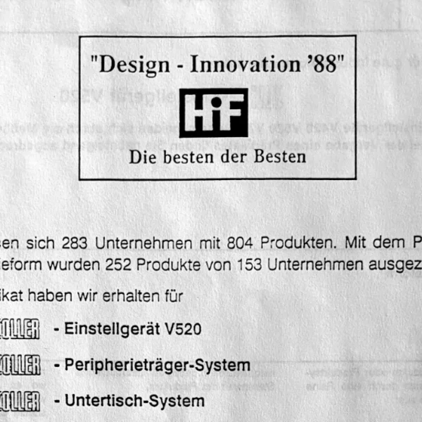 ZOLLER stattet die Serien mit Innovationen aus, wie dem Einhandbediengriff und der Endlos-Feinverstellung. Sie machen die Bedienung deutlich komfortabler. Erstmals arbeitet das Unternehmen mit einem Industriedesigner zusammen. Der Aufwand lohnt sich: Die Geräte gewinnen den Internationalen Industriedesign-Preis HiF und werden als „Die Besten der Besten“ ausgezeichnet.