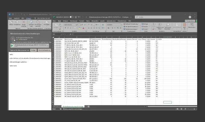 Für Prüfmittel, Betriebsstoffe und größere Komponenten