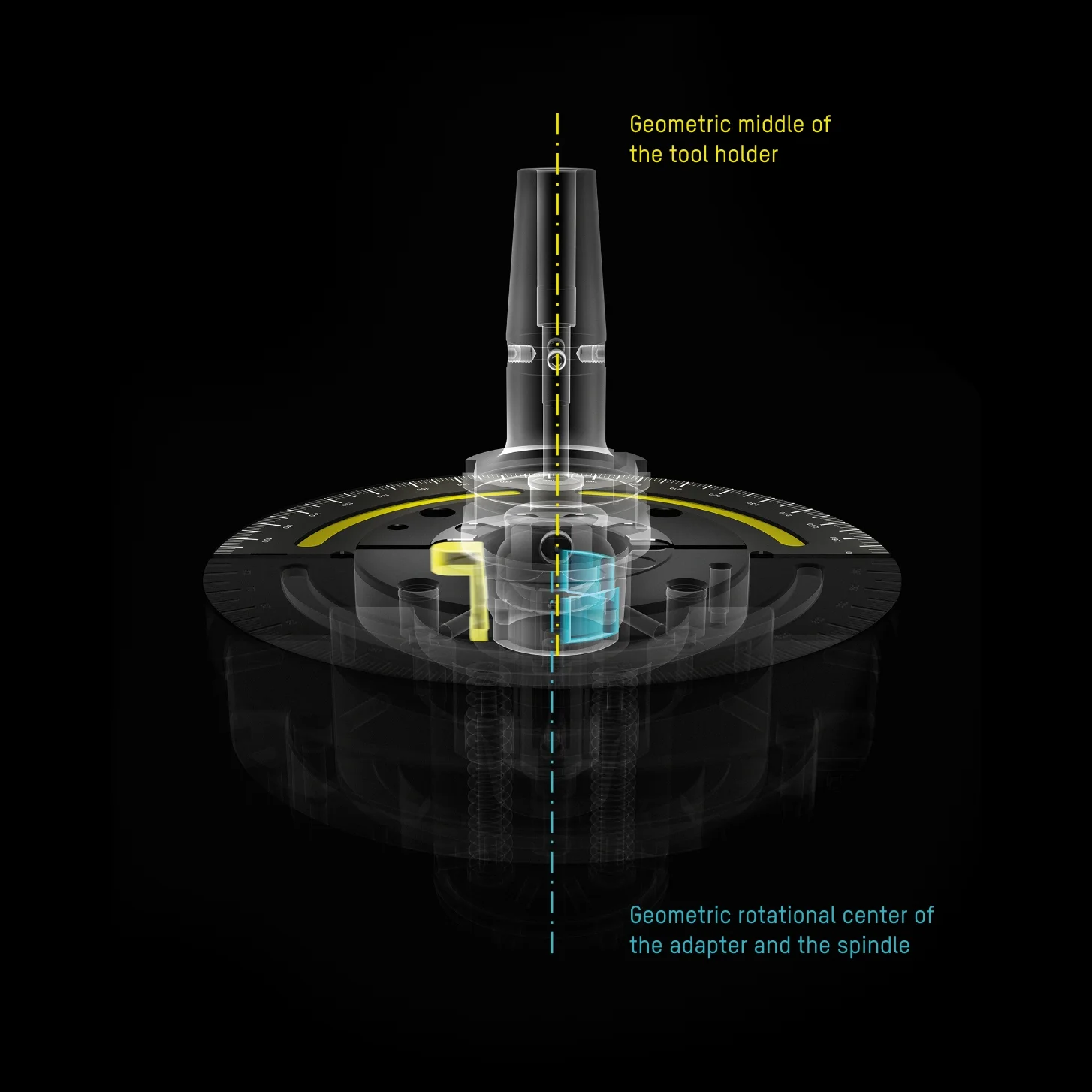 An unbalance on tools is caused by an asymmetrical design and the associated asymmetrical mass distribution. The ZOLLER »toolBalancer« solves this problem by using a deliberate center offset in the balancing adapter when measuring and balancing your tools.
